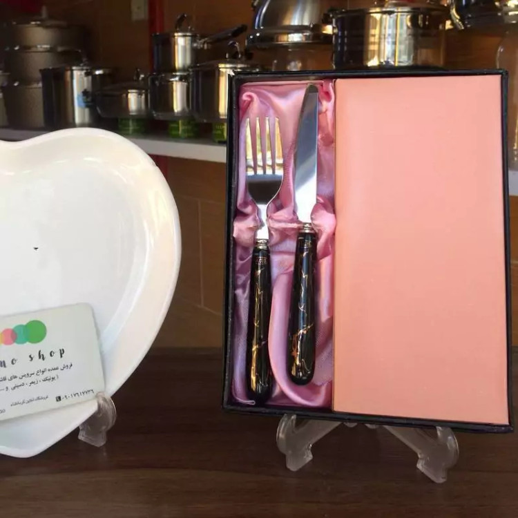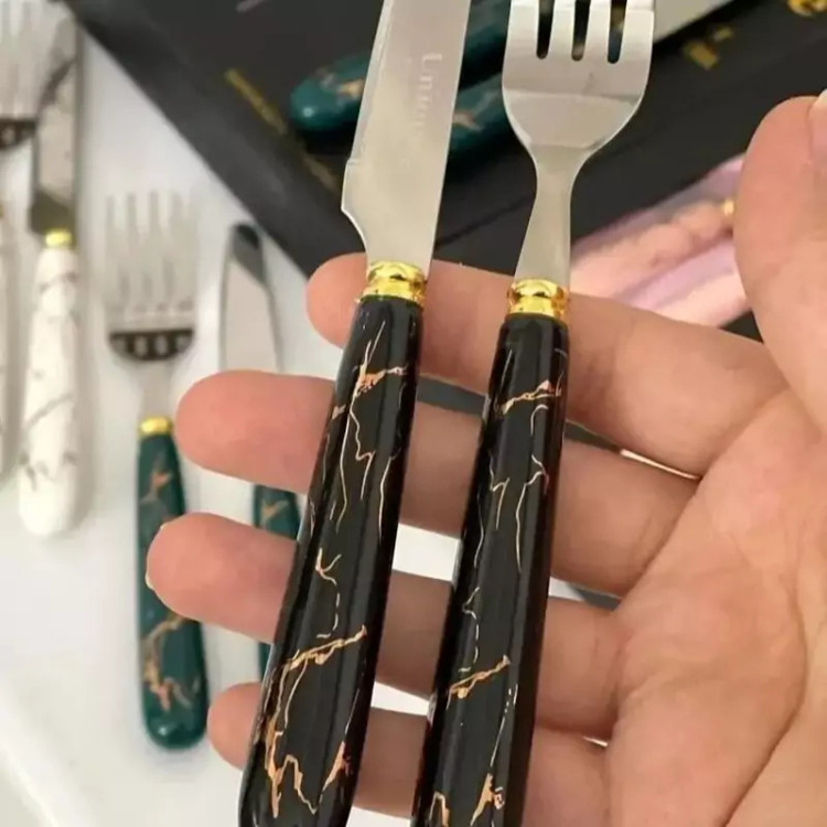 کارد و چنگال دسته سرامیک یونیک مدل ماربل رنگ مشکی و سفید شامل ۶ عدد چنگال و ۶ عدد کارد
