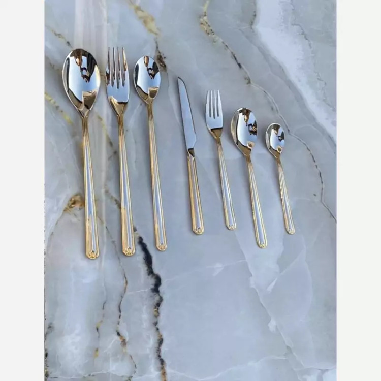 سرویس قاشق و چنگال نیمه طلایی 24 نفره 120 پارچه یونیک