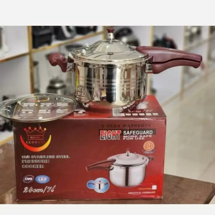 زودپز تک دسته رویال گنجایش 9 لیتر دارای یک درب پیرکس دارای توری بخارپز ضامن فلزی 4 خط اصلی