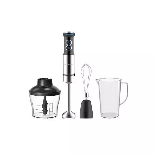 موتور پرقدرت با توان 1200 وات، موتور با سیم پیچ 100 درصد مسی ، دارای ظرف خردکن با ظرفیت 650 میلی لیتر با چهار تیغه، دارای سری همزن نرم جهت تهیه سس خامه دوغ و ....، دارای پارچ میکس با گنجایش 800 میلی لیتر، دور موتور متغییر و قابل تنظیم، پایه استیل ضد پاشش و ضد زنگ جنس ظرف خردکن پلاستیک تعداد تیغههای گوشتکوب چهار پره جنس میله (همزن) استیل ضد زنگ سایر اقلام همراه محصول خردکن، همزن، پارچ میکس جنس تیغه ها استیل ضد زنگ توان 1200 وات