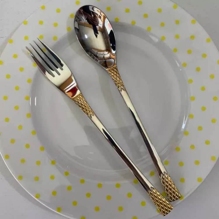 سرویس قاشق و چنگال نیمه طلایی یونیک مدل آناناسی