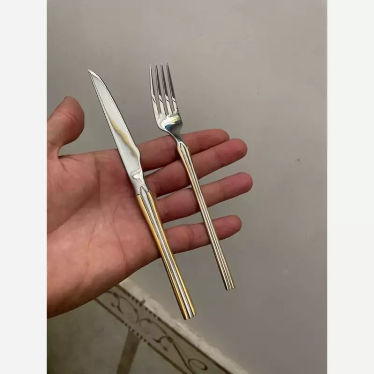 سرویس قاشق و چنگال نیمه طلایی 24 نفره 120 پارچه یونیک 4 میل