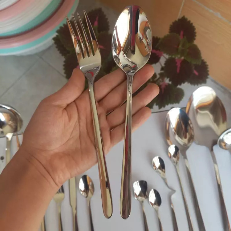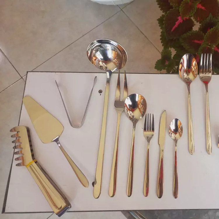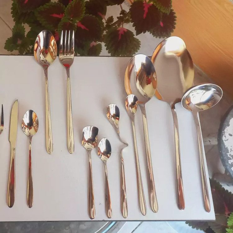 سرویس قاشق و چنگال ۱۴۴ پارچه مدل دونا ۳ میل آهنربا نگیر ۲۴ قاشق ۲۴ چنگال ۱۲ قاشق بستنی ۱۲ شربت ۱۲ مربا ۱۲ چایخوری ۱۲ کارد و ۱۲ چنگال میوه ۴ کفگیر ۴ ملاقه بزرگ ۲ ملاقه کوچک ۱ قاشق خورشت ۶ قاشق عسل ۳ قاشق سوپ ۱ انبر سالاد ۱ انبر کیک ۱ پالت کیک ۱ چنگال مرغ قیمت درج شده برای سرویس بدون چمدان میباشد