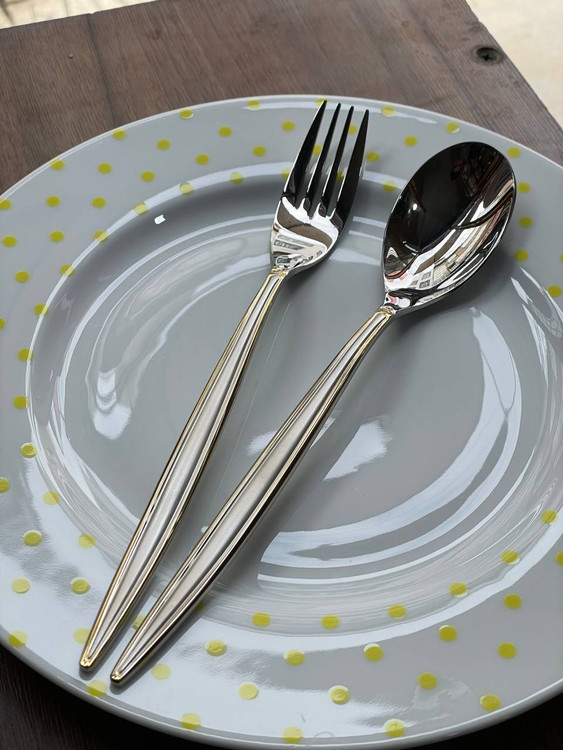 سرویس قاشق و چنگال ۱۲۰ پارچه نیمه طلایی یونیک مدل سوزنی