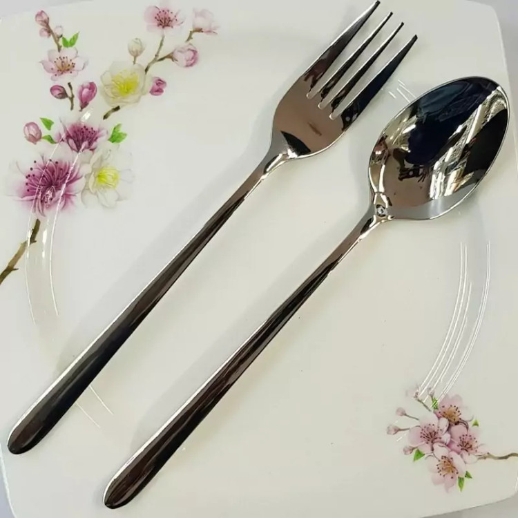 قاشق و چنگال کارتن بنفش در ۵ طرح استیل نگیر ضد زنگ کارتن بنفش شامل ۶ عدد چنگال و ۶ عدد قاشق